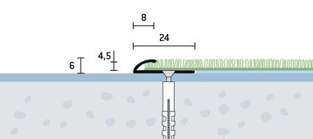 Ukončovací profil s predvŕtanými otvormi pre zapustené skrutky sa používa na ukončenie podlahových krytín s hrúbkou maximálne 4,5 mm. Ponúkame štyri farebné prevedenia eloxáže hliníka.